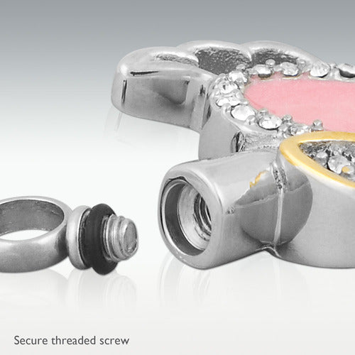 Wie genannt hat der Asche Anhänger Engelsflügel eine Herzform mit Engelsflügel. Dessen einzige Design macht den Asche Anhänger ein Star Produkt, das unseren Kunden sehr gefällt. Die Herzfom ist rosefarben und mit zahlreichen Strassen verziert. Dieser Asche Anhänger ist entworfen, ein kleines bisschen Aschen, Haare oder Blume zu behalten.