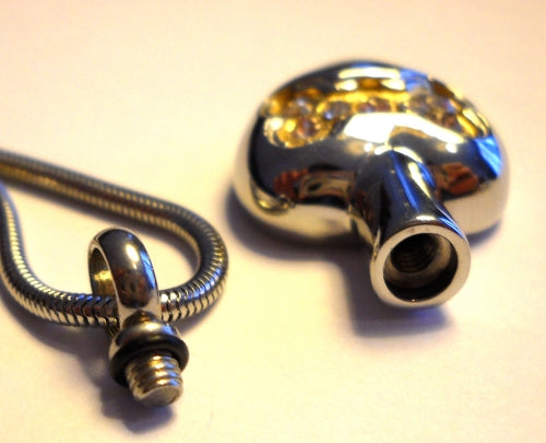 Durch eine kleine Menge der Asche, eine Haarlocke von getrockneten Blumen, eröglicht unserer Gedenkschmuck eine persönliche Verbindung zwischen Ihnen und Ihrem verschwunden Freund bewahren.