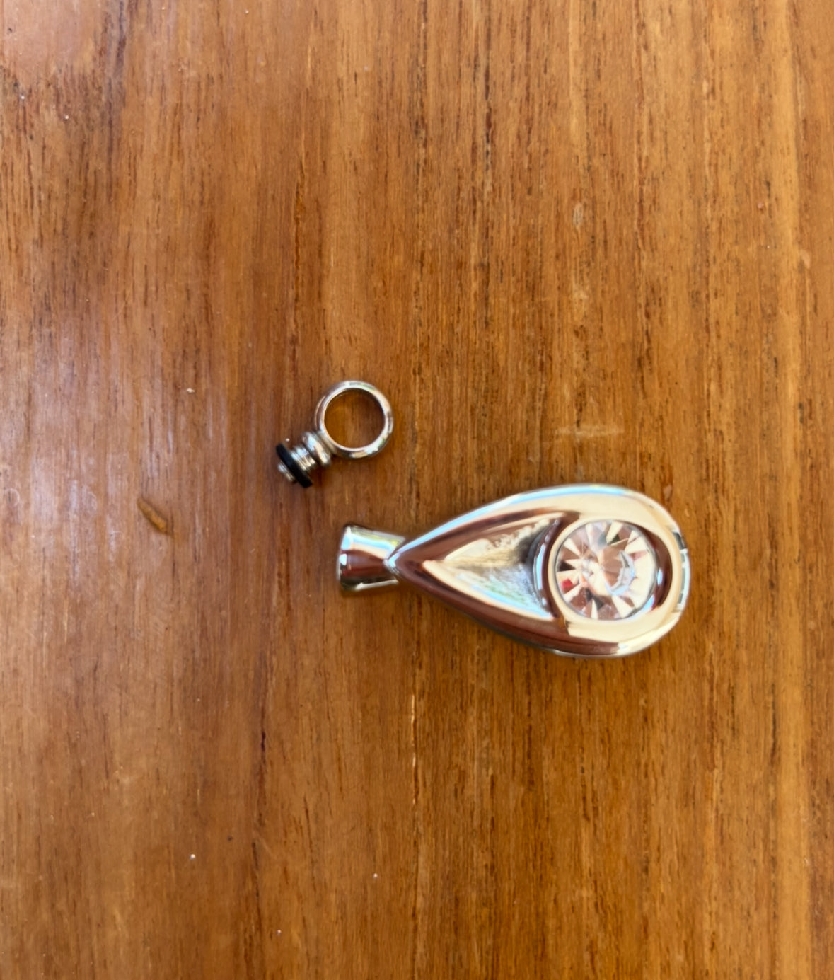 Asche Anhänger Tropfen ist aus rostfreim Edelstahl entworfen, so ist der sehr beständig. Dessen Schraubverschluss erlaubt die Asche in Sicherheit zu behalten. Jedoch laufen die Asche Gefahr zu verschwinden. Wir schlagen es vor, die Asche Urne mit einem kraftvollen Kleber zu verbinden, dann sorgen Sie nichit mehr, dass die Aschen nicht im Asche Anhänger bleibt.