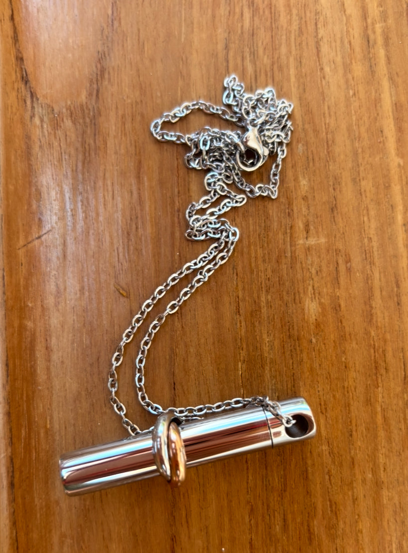 Dieser Urnenanhänger aus Edelstahl ist witterungsbeständig. Sie können ihn auch unter der Dusche tragen. Der Urnenanhänger ist nicht rostgefährdet.