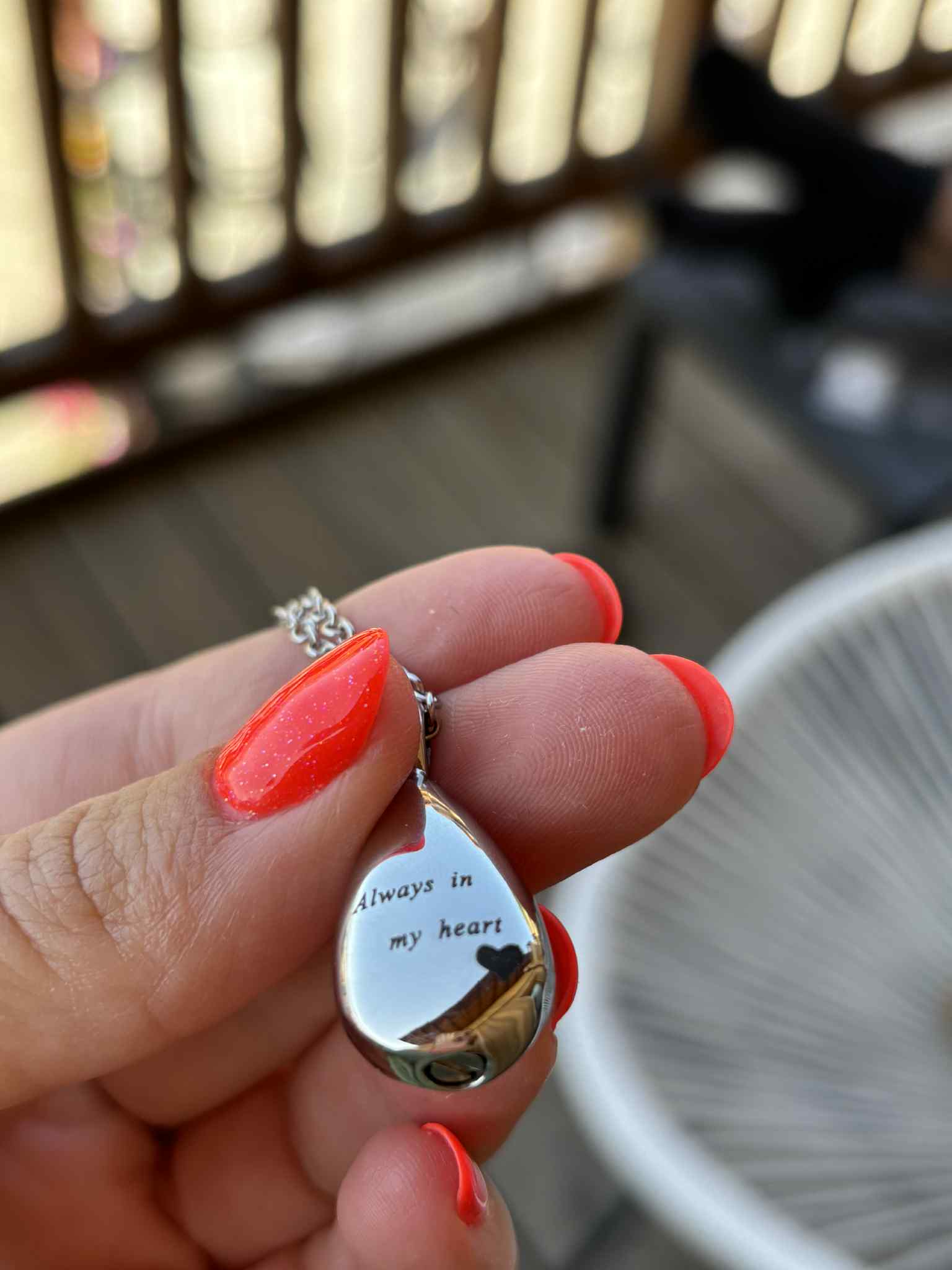 • Praktisch : Öffnung unter dem Anhänger zum Einlegen der Asche oder einer Erinnerung.