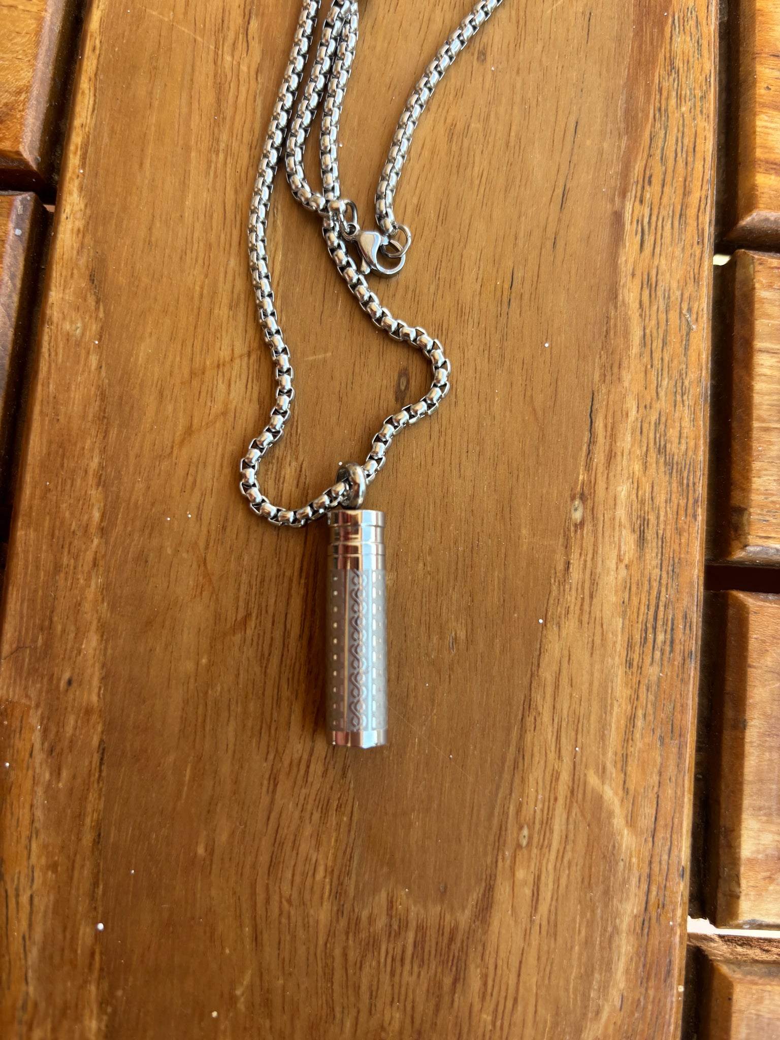 Dieser Urnenanhänger aus Edelstahl ist witterungsbeständig. Sie können ihn auch unter der Dusche tragen. Der Urnenanhänger ist nicht rostgefährdet.