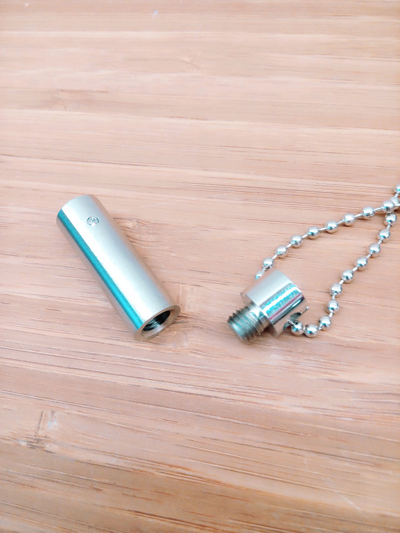 Dank dem verlässlichen und einfachen Schließung-System (eine Schraube von oben), erlaubt der Asche Anhänger die Aschen in Sicherheit zu behalten. Um diesen Asche Anhänger ständig zu behalten, empfehlen wir Superkleber, ein kraftvolle Klebstoff. Asche Anhänger Urnta ist aus rostfreim Edelstahl hergestellt, so ist der sehr robust und wasserdicht. Wir versichern auch eine schnelle und geschützte Lieferung. Mit der Sendungsnummer können Sie die Postzustellung folgen.