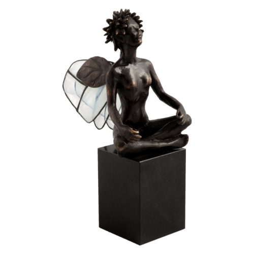 Materialien: Bronze-Statue; Sockel aus schwarzem Granit; Flügel aus lackierten Glas.