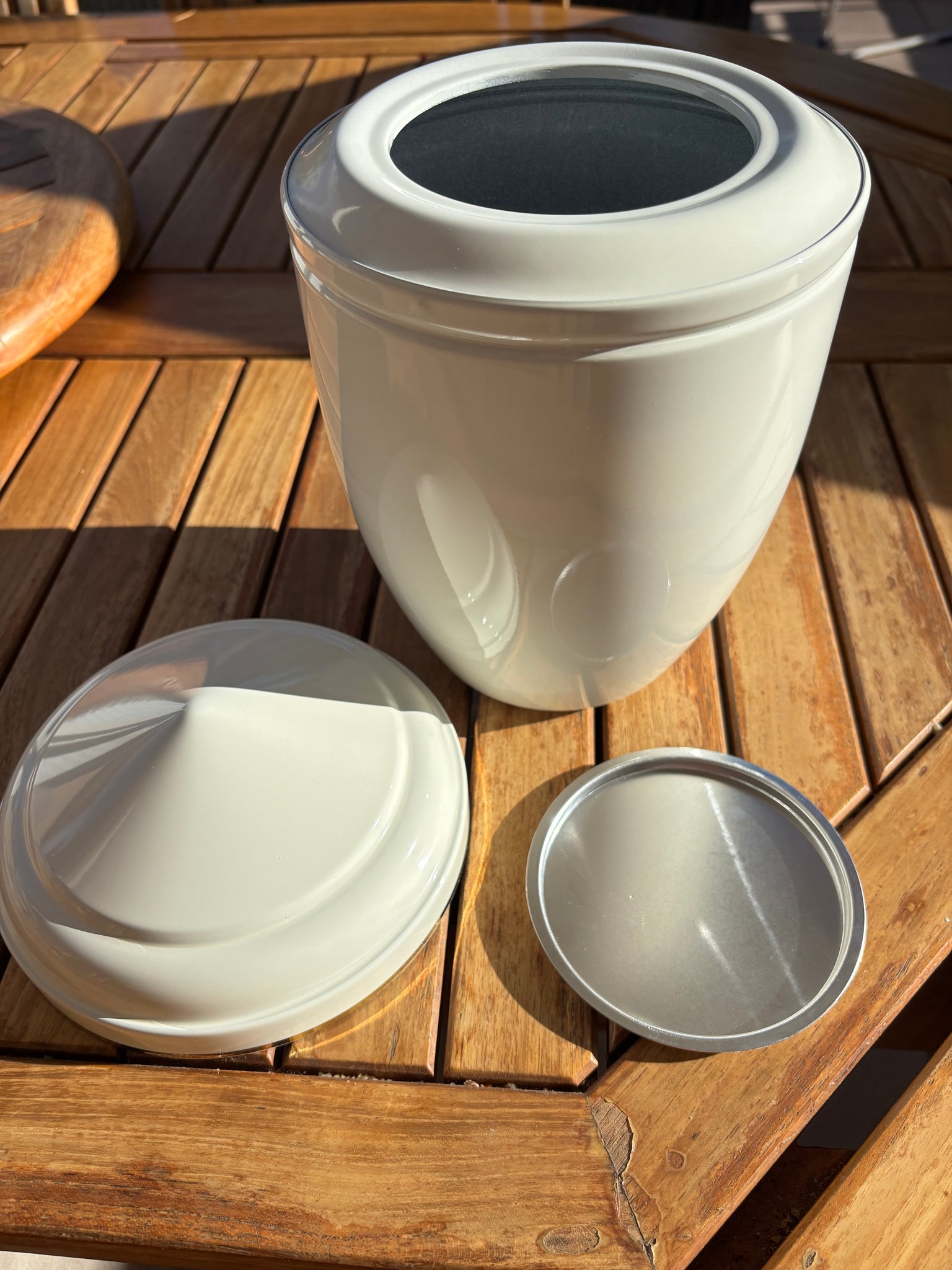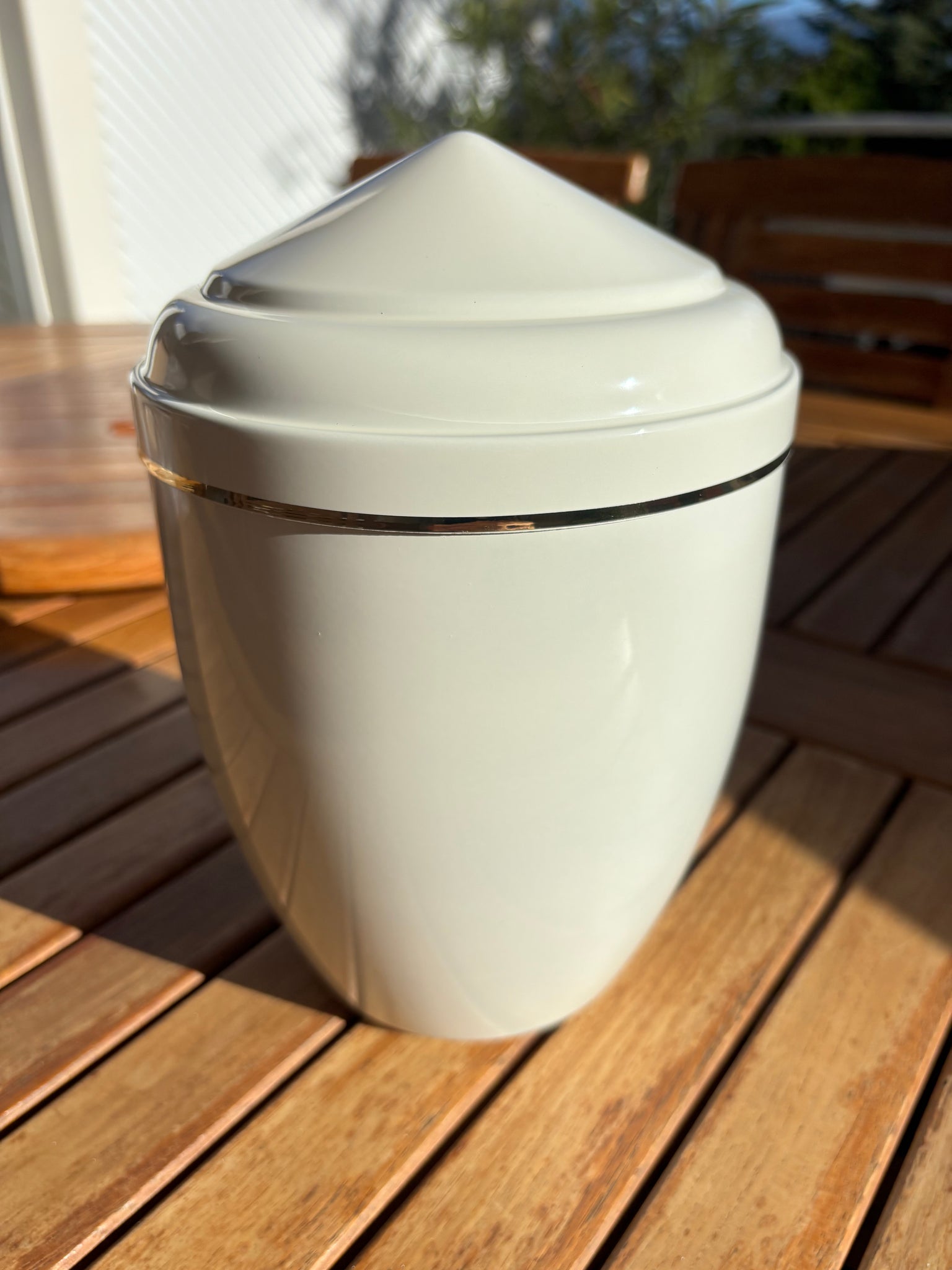 Das Metallmaterial ist beständig und hat eine lange Lebensdauer. Im Gegensatz zu anderen zerbrechlichen Materialien, wie Porzellan, dieses Modell derurne bestattungbricht nicht, also geeignet für das Ablager im Freien. Das Sortiment Urne aus Metall MONDALAY ist in drei Farben erhältlich: weiß, bordeaux und blau