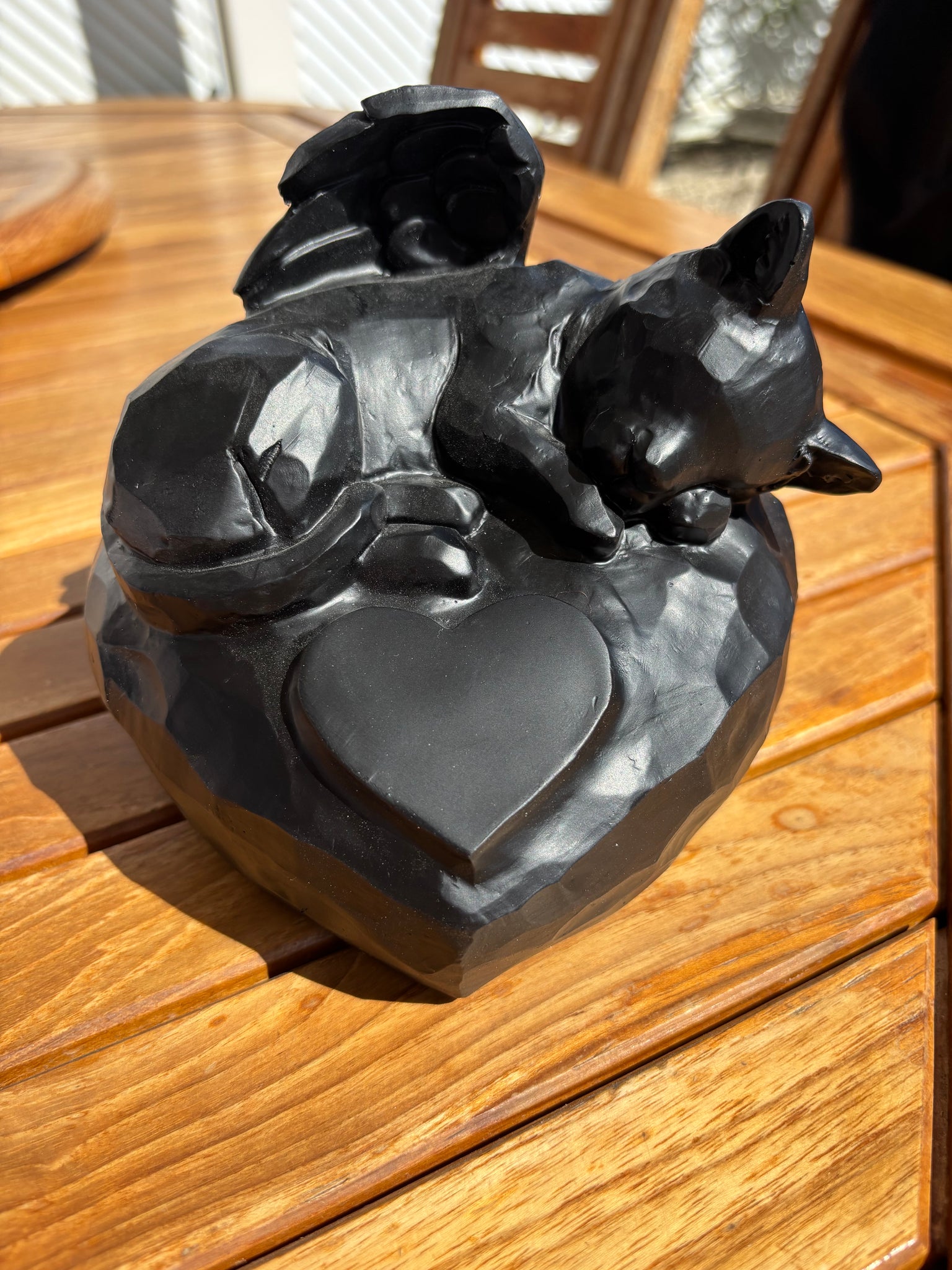 Dieses hochwertige Gedenkprodukt ist fachmännisch gefertigt und garantiert die Sicherheit Ihrer Asche. Die Öffnung unter der Statue ist mit einem sicheren Deckel verschlossen. Dank ihres Designs und der schönen Verarbeitung ist die Katzenurne zudem eine schöne Dekoration für Ihr Zuhause.