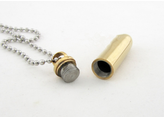 Der Gedenkanhängert hat ein außerordentliches Design: Pistolenkugel-förmig. Dieser Gedenkanhänger kann zu Männer und Frauen passen. Wir bieten auch andere Pistolenkugel-förmigen Asche Anhänger mit besonderer Motiv: Drache und Skorpion.