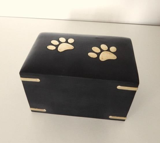 Attention: End of stock. There are flaws on the gold colored metal which shows signs of oxidation when you look closely at the urn (see photo). In addition, if we look even more carefully, the wood may show irregularities in the black paint. Therefore the price is greatly reduced.