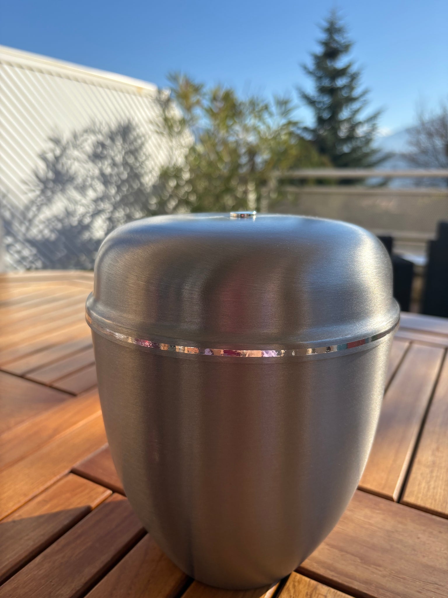 Made of metal, a material known for its strength, this funeral urn offers good durability over time. Unlike more fragile materials such as glass or porcelain, metal urns have a stable and durable structure. They therefore allow for respectful and long-lasting preservation of ashes.